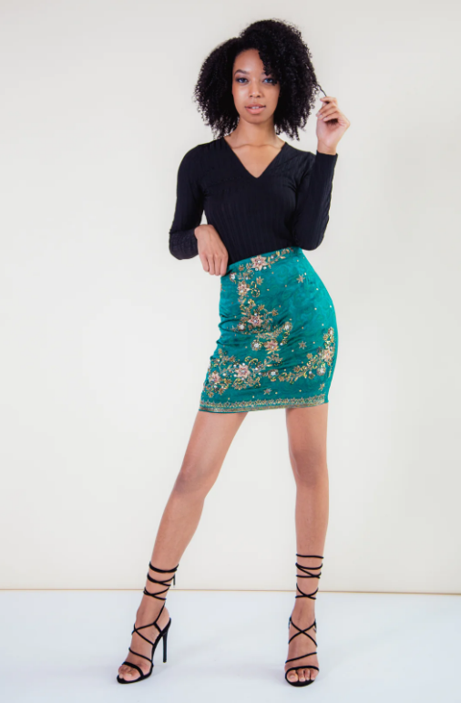 Dark Pink Hand-Embroidered Upcycled Mini Skirt